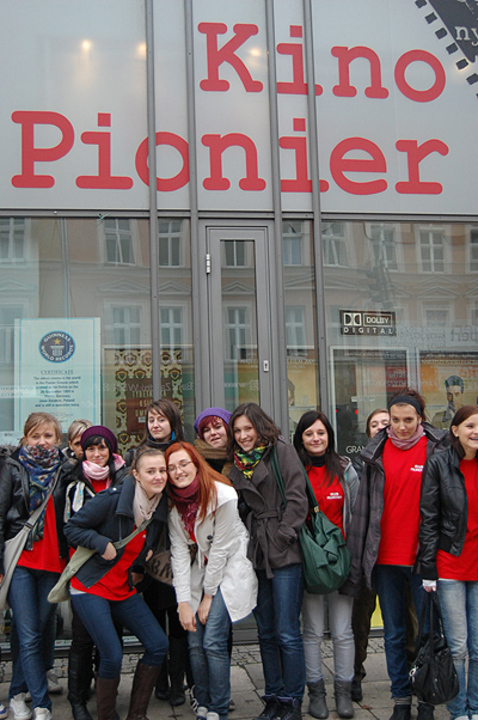 Uczestnicy projektu „Zajęcia filmowo-dziennikarskie" finansowanego przez Europejski Fundusz Społeczny, zwiedzili najstarsze, nieprzerwanie działające kino na świecie, czyli 100- letnie kino „Pionier" w Szczecinie. Młodzież miała okazję zwiedzić to studyjne, klimatyczne kino, poznać i „poczuć" jego historię. Zachwyciła ich niewielka (mieszcząca ok.80 osób) sala kinowa i przytulne pomieszczenie Kiniarni, w którym można obejrzeć film popijając dobrą herbatę czy kawę. W tym miejscu, słychać głos starego projektora kinowego. Licealiści byli zachwyceni tym niewielkim, założonym w 1909 roku kinem, które uzyskało certyfikat Księgi Rekordów Guinnesa.