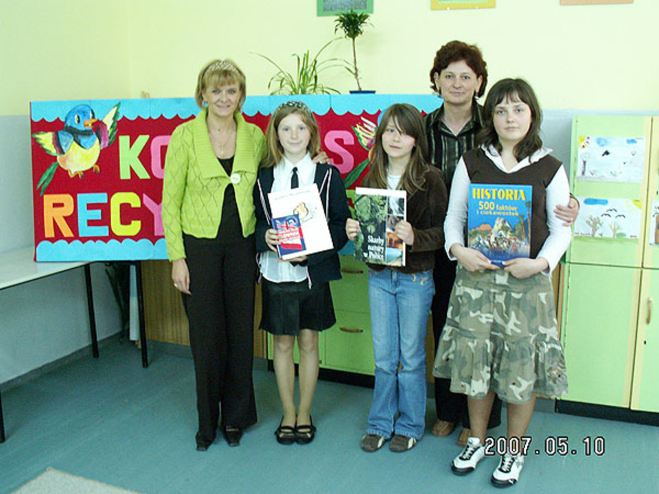 W dniu 10 maja 2007 r. w Szkole Podstawowej nr 3 odbył się szkolny konkurs recytatorski „Ptaki, Ptaszki i Ptaszęta Polne”, w którym łącznie zaprezentowało wiersze 64 uczniów z klas I – VI. Dzieci szczególnie z klas młodszych najchętniej, jak zwykle, recytowały wiersze J.Brzechwy i J.Tuwima. Jury, w składzie: A.Bukowska, J.Iwanowska, i K.Tocha, miało niezwykle trudny wybór, jeżeli chodzi o wyłonienie najlepszych recytatorów, gdyż poziom był bardzo wyrównany. W grupie młodszej I miejsce zdobyła Natalia Wierzbicka (klasa III b, II miejsce przypadło Zuzannie Płachta III e, a III- Klaudii Szymczak (I b). W grupie starszej klas miejsce I zdobyła Monika Jastrzębska (VI b), II- Karolina Lewko V a, III- Daria Badyna (IV e). 15 maja w kinie „Bajka” wszystkie uczennice wzięły udział w dalszych eliminacjach, tym razem miejskich. Gratulujemy wszystkim uczestnikom! Organizatorki konkursu: B.Hulewska J.Iwanowska