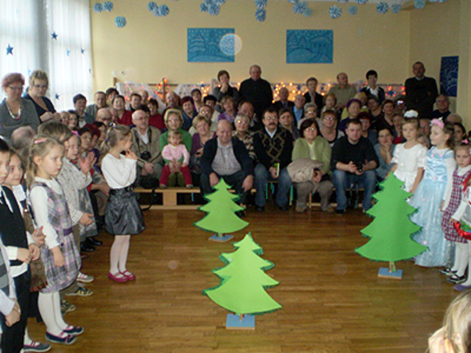Przedszkolaki przedstawiły „Bajkowe Jasełka". Mówiły wiersze, śpiewały, tańczyły, grały na instrumentach perkusyjnych. Wykazały się dużymi zdolnościami aktorskimi. Wśród licznie zgromadzonych gości widać było ogromne wzruszenie, na niejednej twarzy pojawiły się łzy.