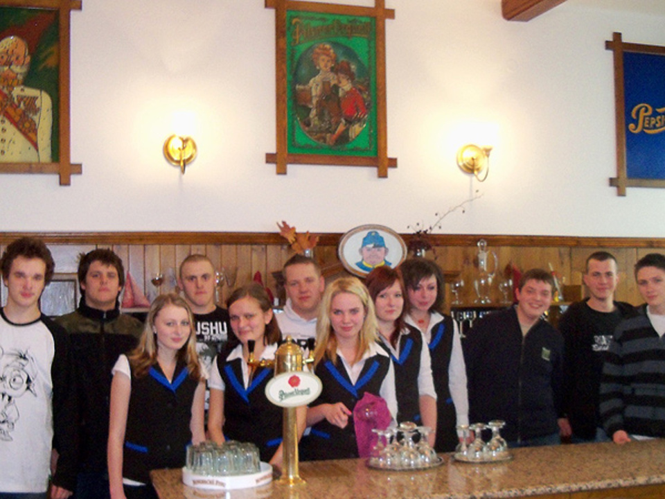 W środę natomiast mieliśmy okazję zwiedzić fabrykę szkła ozdobnego w Harrachov. Fabryka szkła to właściwie kompleks składający się z fabryki szkła, muzeum szkła, browar i restauracji. Fabryka szkła działa na zasadzie manufaktury sprzed lat. Zatrudnia 40 pracowników, którzy produkują szkła ozdobne, charakterystyczne, a ich produkcja w 90% jest eksportowana, tylko 10% zostaje w Czechach. W piecach, obok których przechodziliśmy panuje temperatura 200 st. C. Z pracownikami wytapiającymi szkło mogliśmy porozmawiać, jednak musieliśmy uważać na taśmy z gotowymi kieliszkami i pucharami. Następnie oglądaliśmy pracę szlifierów, którzy z normalnego kieliszka potrafili zrobić dzieło sztuki.