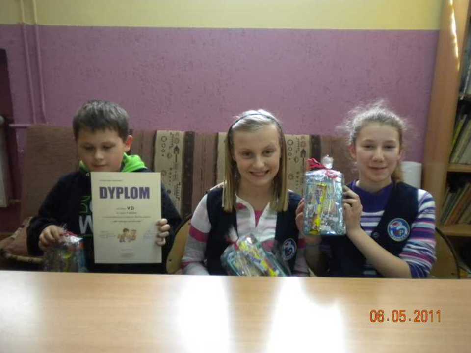 pierwsze miejsce klasa Vd: Paulina Dominiak, Marta Sobieraj, Adam Pasławski;