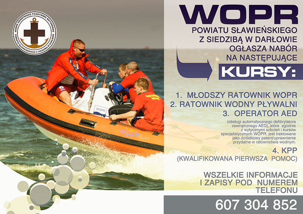 WOPR POWIATU SŁAWIEŃSKIEGO Z SIEDZIBĄ W DARŁOWIE OGŁASZA NABÓR NA NASTĘPUJĄCE KURSY: