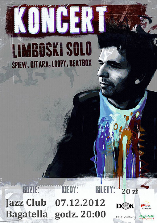 Fala Kultury (Marcin Cichocki) oraz Darłowski Ośrodek Kultury serdecznie zapraszają do Jazz Clubu Bagatella w Darłowie na koncert: LIMBOSKI SOLO. Odbędzie się on 7 grudnia 2012 (tj. piątek) o godzinie 20:00. Bilety na to wydarzenie w cenie 20 zł do nabycia w dniu i miejscu wydarzenia.