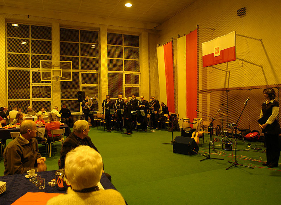 Dalsze uroczystości zostały przeniesione do hali sportowej w Zespole Szkół Morskich, gdzie odbyła się Muzyczna Biesiada Polaków. Rozpoczął ją koncert muzyki legionowej i patriotycznej, który dała Orkiestra Dęta ze Sławna pod batutą kapelmistrza Macieja Poprawskiego. W raz z orkiestrą swoje umiejętności zaprezentowały marżonetki.