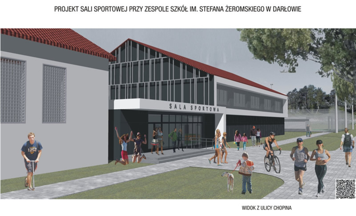 Tuż przed świętami zakończone zostały prace projektowe i miasto wystąpiło o pozwolenie na budowę hali sportowej. Początkowo wielofunkcyjna sala sportowa przy Zespole Szkół im. S. Żeromskiego miała być budowana w systemie zaprojektuj i wybuduj. Jednak okazuje się, że lepiej dla funkcjonalności obiektu i spraw przetargowych jest osobne wykonanie dokumentacji przez specjalistów i odrębna realizacja przez firmę budowlaną. Obecnie miasto dysponuje już kompletną zmodyfikowaną dokumentacją techniczną opracowaną przez Buro Projektów Chmielnicki Architekci, z siedzibą w Darłowie, ul. Powstańców Warszawskich 43.