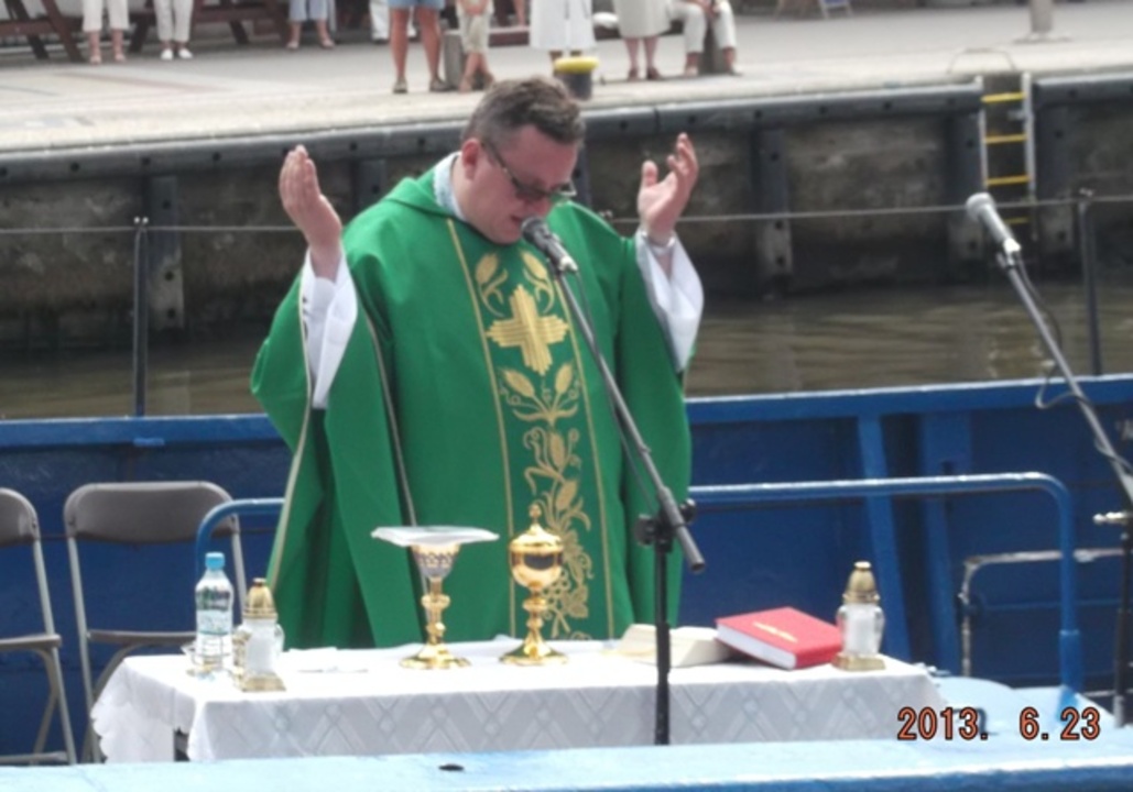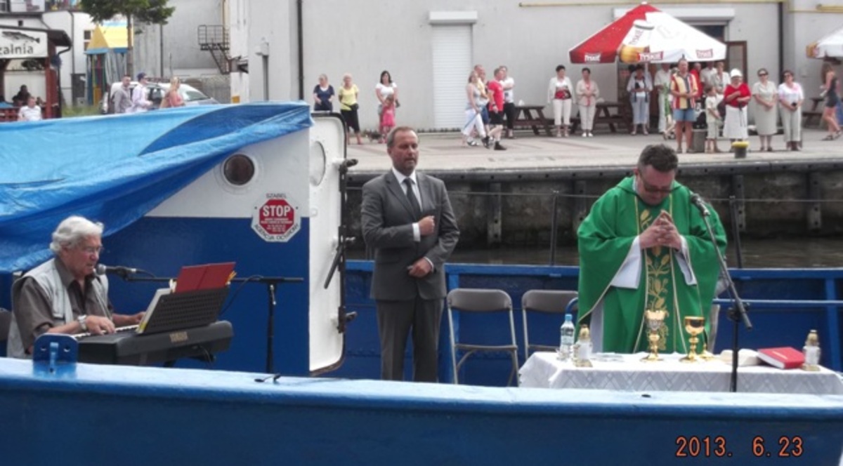 Dla licznie przybyłych wiernych mszę świętą celebrował proboszcz parafii p.w. Św. Maksymiliana Marii Kolbego o. Grzegorz Pisko. Organistą był Jan Szwarclose. Msza zainaugurowała tegoroczne Dni Morza w Darłowie, których kulminacją mają być odwiedziny legendarnego żaglowca „Pogoria", który ma zacumować w Darłowie, w czwartek 27 czerwca. Trójmasztowa barkentyna po zacumowaniu będzie udostępniona do zwiedzania mieszkańcom i turystom