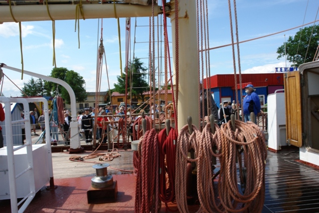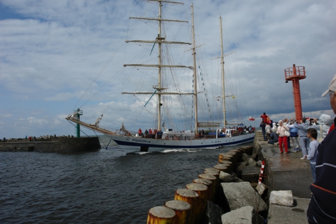 Tuż po godzinie jedenastej 27 czerwca 2013 trójmasztowa barkentyna s/y „Pogoria” zacumowała w porcie Darłowo na honorowym nabrzeżu przed Terminalem Sztuki. Goraco witali żeglarzy uczniowie ZSM i orkiestra dęta. Pierwsi na pokład żaglowca weszli Arkadiusz Klimowicz – burmistrz miasta Darłowa, Waldemar Śmigielski – dyrektor Zarządu Portu Morskiego Darłowo i Magdalena Burduk szefowa referatu promocji w UM. Włodarz miasta przekazał kapitanowi żeglugi wielkiej Maciejowi Leśnemu flagę miasta Darłowa i medal z herbem grodu. W kapitańskiej mesie kaphornowiec i zarazem dowódca żaglowca opowiedział o szkoleniowym rejsie z Bremenhaven do Gdyni, w którym udział wzięło 49 żeglarzy razem z kadrą. Zbudowany w 1980 r. żaglowiec o długości całkowitej 46,8 m, szerokości - 8 m i zanurzeniu 3,8 m nosi 15 żagli o łącznej powierzchni 909 m2. Po powitaniu burmistrz miasta zaprosił załogę żaglowca na śniadanie, po którym udostępniono żaglowiec do zwiedzania. Z Darłowa na Hel Pogoria wyruszy jutro.