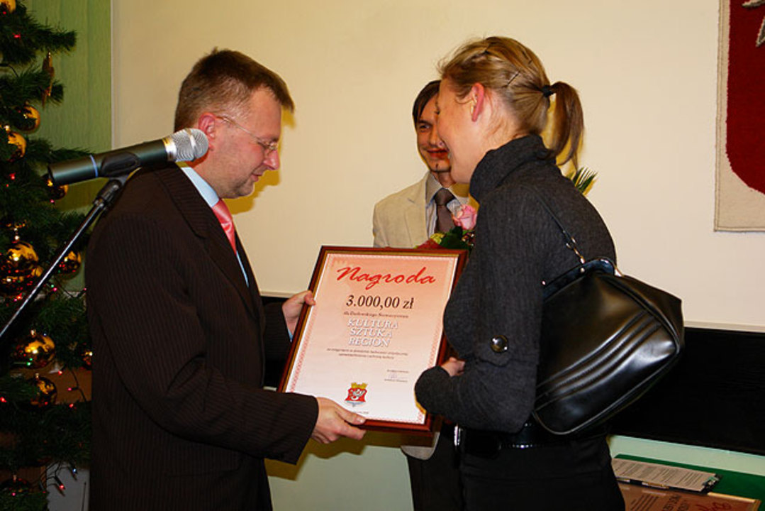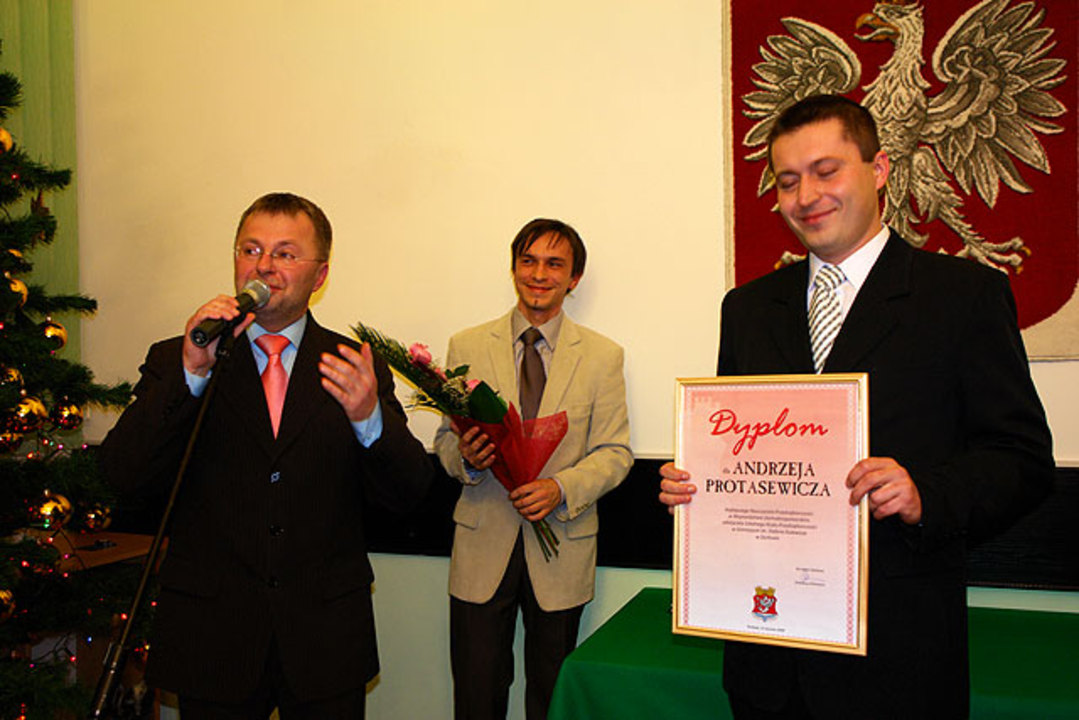 Dyplom gratulacyjny za zdobycie tytułu Najlepszy Nauczyciel Przedsiębiorczości w Województwie Zachodniopomorskim” otrzymał Andrzej Protasewicz z Miejskiego Gimnazjum im. S. Dulewicza. Następnie przy lampce wina, ciastach i owocach dyskutowano o planach miasta i stowarzyszeń związanych z rozwojem kultury na rok 2008.