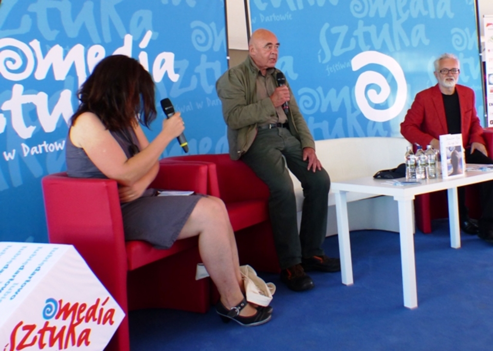 Tuż po otwarciu miało miejsce spotkanie z aktorem, satyrykiem i felietonistą Stanisławem Tymem zatytułowane „Pies czyli kot”. Spotkanie poprowadzili Ewa Winnicka i Henryk Sawka. Aktor filmowy i teatralny, reżyser, scenarzysta oraz satyryk jak zawsze dowcipnie opowiadał o początkach swojej kariery w teatrze warszawskim STS, o występach kabaretowych, sztukach, skeczach i swoich satyrycznych tekstach, które wykonywali prawie wszyscy znani artyści polskich scen kabaretowych. Po spotkaniu Stanisław Tym podpisywał książkę pt. „Pies czyli Kot, która jest zbiorem jego felietonów z lat 1972- 2014 z rysunkami autora.