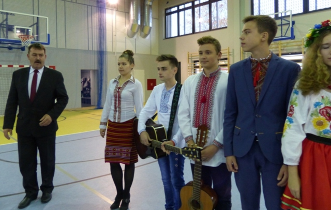 Na zaproszenie dyrektora Zespołu Szkół im. S. Żeromskiego Bogdana Herbecia ukraińscy muzycy 24 października dali koncert pieśni i muzyki ludowej w sali sportowej, która jak się okazuje ma znakomitą akustykę. Na trybunach zmieścili się wszyscy uczniowie i nauczyciele ZS. Występujących muzyków i wokalistów nagrodzono za ich kunszt i wspaniałe głosy burzą oklasków.