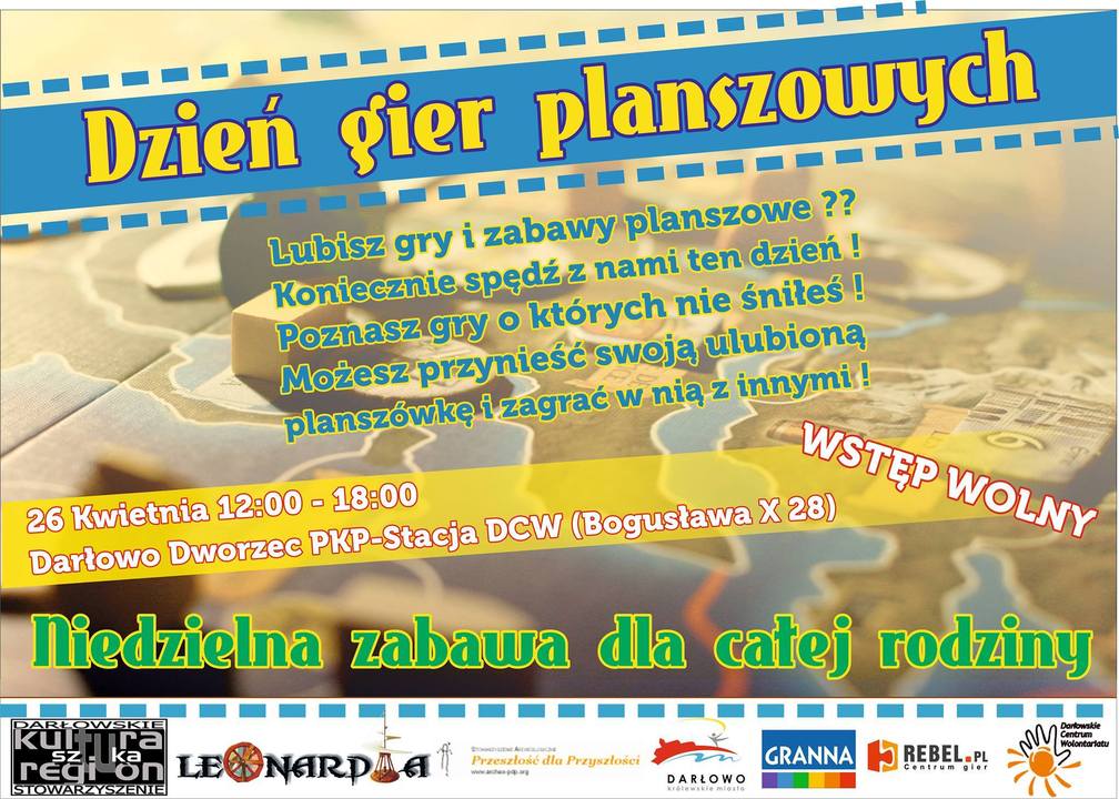 Rodzinnie może być też w niedzielę, 26, kwietnia. Od godziny 12.00 do 18.00 na dworcu PKP w Darłowie w nowej siedzibie wolontariatu, czyli Stacji DCW. Darłowskie Stowarzyszenie Kultura Sztuka Region Leonardia park rozrywki oraz Darłowskie Centrum Wolontariatu proponują nowy cykl spotkań. Dzień gier planszowych to doskonała okazja spotkania się z przyjaciółmi, zagrania w ulubioną grę, poznanie kolejnej albo być może w pierwszej w życiu niesamowitej planszówki. Proponujemy wszystkim mieszkańcom Darłowa i okolic wyjść z domu w niedzielne popołudnie 26 kwietnia.