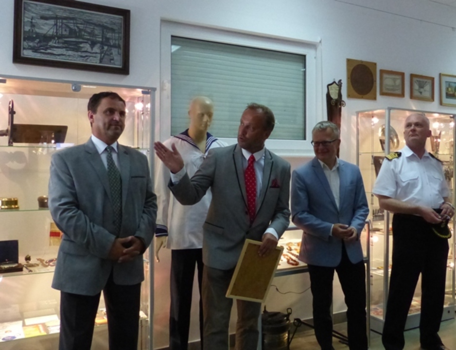 Burmistrz Darłowa – Arkadiusz Klimowicz i dyrektor Darłowskiego Ośrodka Kultury im. Leopolda Tyrmanda – Arkadiusz Sip 28 sierpnia w Terminalu Sztuki w Darłówku przy ul. Kotwicznej 12 otworzyli Muzeum Morskie.