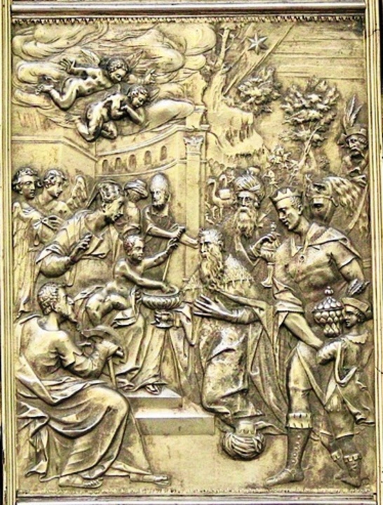 Na zdjęciu Pokłon Trzech Króli na srebrnej plakiecie z Darłowskiego Ołtarza