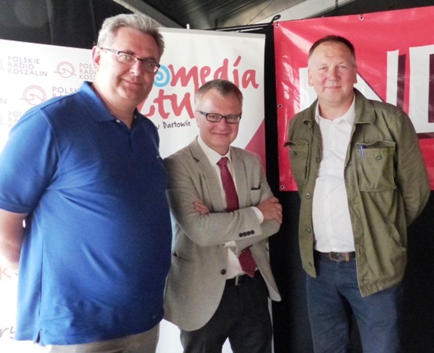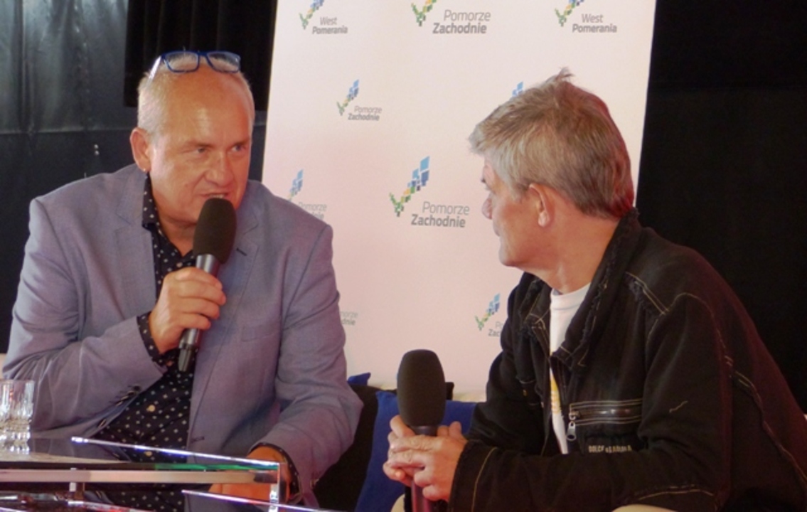 Słynny Edi z dramatu Piotra Trzaskalskiego od razu zjednał sobie publiczność, która z okazji ukończenia przez niego w czerwcu br. 60 lat hucznie odśpiewała mu sto lat. Henryk Julian Gołębiewski wychował się i mieszka na warszawskim Mokotowie. Popularny Heniek jest przedstawicielem grupy tzw. naturszczyków, czyli aktorów na ogół bez wykształcenia aktorskiego, grających „siebie samych”. Dla filmu został odkryty przez Janusza Nastfetera. Wystąpił wówczas w filmie „Abel twój brat”. Następnie był regularnie zatrudniany w obsadzie dziecięcej przez Stanisława Jędrykę do seriali przygodowych dla młodzieży, takich jak: Wakacje z duchami, Podróż za jeden uśmiech i Stawiam na Tolka Banana. Miał trudne okresy w życiu, był bezrobotnym i niestroniącym od alkoholu. Otrzymywał liczne Nagrody za role filmowe i teledyski. Gość festiwalu Media i Sztuka, który przyjechał do Darłówka z Wrocławia przyznał, że aktorstwo filmowe w jego życiu to przypadek. Kiedy nie gram, aby zarobić podwijam rękawy i idę pracować do budowlanki, aby utrzymać żonę Marzenę i córkę Różę. W festiwalowej księgarni można kupić książkę pt. „Zygzakiem przez życie” napisaną przez Tomasza Solarewicza, w której Henryk Gołębiewski bez owijania w bawełnę szczerze opisuje czasem bardzo trudne i pełne przygód swoje barwne życie. Drugie spotkanie z mistrzem reportażu Wojciechem Tochmanem poprowadził autor kilku książek i dziennikarz Cezary Łazarewicz. W roku 1990 do Gazety Wyborczej przyjęła go Hanna Krall. Przez 6 lat Od prowadził w TVP1 program poświęcony osobom zaginionym „Ktokolwiek widział, ktokolwiek wie”. W 1999 r. założył Fundację Itaka poszukującą zaginionych i pomagającą ich rodzinom. W roku akademickim 2006/2007 wykładał w Instytucie Dziennikarstwa Uniwersytetu Warszawskiego. Jest pomysłodawcą Klubu HEBAN i koordynatorem jego działań. Fundacja udziela pomocy dzieciom we wsi Nyakinama w Rwandzie. W 2009 r. założył w Warszawie wraz z Pawłem Goźlińskim i Mariuszem Szczygłem Instytut Reportażu, gdzie wykłada w Polskiej Szkole Reportażu oraz angażuje się w działalność Faktycznego Domu Kultury i kluboksięgarni „Wrzenie Świata” w Warszawie. Za swoje mistrzowskie reportaże tłumaczone na kilkanaście języków zebrał szereg nagród: Reporter Roku, finalista Nagrody Literackiej Nike, Nagroda Poznańskiego Przeglądu Nowości, Pióro Nadziei – Nagroda Amnesty International i wielu innych. Dalej w hali położonej na plaży w Darłówku wschodnim czytali fragmenty Trylogii Henryka Sienkiewicza, Wojciech Pszoniak i Jerzy Bralczyk. Gdy fenomenalnie czytał Wojciech Pszoniak o Bohunie i kniaziównie Kurcewiczównie to można było sobie wyobrazić wszystkie szczegóły poszczególnych scen niczym w doskonałym filmie. Językoznawca prof. Jerzy Bralczyk większy akcent na sienkiewiczowskie pojedynki, które stały nam przed oczami jak żywe. Wsłuchując się w sienkiewiczowskie opowieści satyryk Henryk Sawka narysował kilka scen uwspółcześniając je politycznie. W wyjątkowym spotkaniu zatytułowanym „Serwus jestem nerwus” poświęconym zmarłej niedawno Marii Czubaszek wypowiadali się: Wojciech Karolak, Artur Andrus, Grzegorz Miecugow, Marek Przybylik, Henryk Sawka Michał Ogórek. Z opowieści bliskich i przyjaciół wyłoniła się wszechstronna pisarka, satyryczka, autorka tekstów przebojowych piosenek, komentatorka „Szkła kontaktowego”, autorka słuchowisk radiowych i jurorka licznych przeglądów kabaretowych. Jej celne satyryczne powiedzonka weszły na stałe do historii rozrywki. Na Festiwalu Media i Sztuka w Darłowie gościła dwukrotnie. Na zakończenie pierwszego dnia festiwalu odbył się koncert muzyki świata z udziałem Michała Augustyniaka vel Limboski.