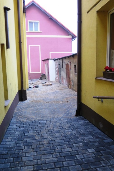 Zakończono prace kanalizacyjne i położono nową nawierzchnię z kostki betonowej na podwórku położonym na zapleczu domów w narożu ulic Wenedów i Kościelnej. Jak nas informuje Waldemar Bonk – kierownik referatu gospodarki komunalnej i mieszkaniowej w Urzędzie Miejskim dokonano wymiany kolektora sanitarnego i w miejscu gdzie było błoto położono ponad 100 metrów kwadratowych nowej nawierzchni. Całość wykonanych robót kosztowała 32 tys. złotych.