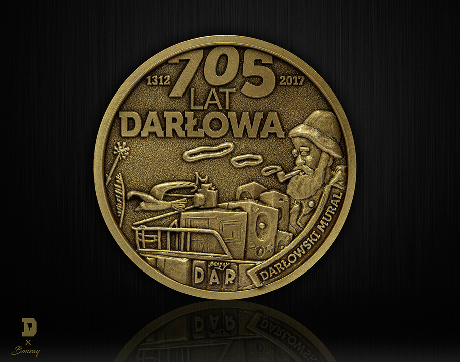 Prototyp awersu zaprojektował Daniel Frącz, który przypomnijmy był pomysłodawcą darłowskiego murala, który otrzymał poparcie społeczne w otwartym głosowaniu, uzyskując blisko 800 głosów na TAK dla realizacji projektu w ramach Projektu Budżetu Obywatelskiego Miasta Darłowa w roku 2016.