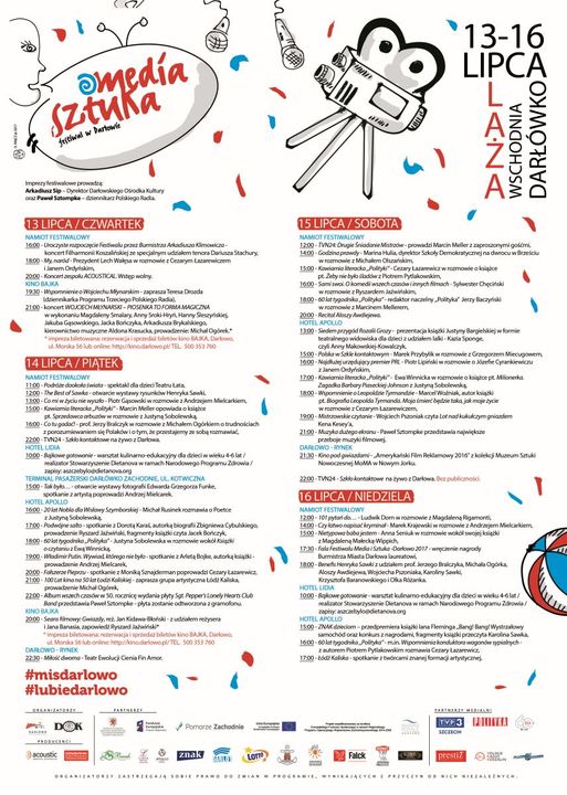Już od jutra Darłowo wraz z jego nadmorską dzielnicą Darłówkiem zamieni się w letnią, dziennikarską i medialną stolicę Polski. Tuzy dziennikarstwa, artyści, aktorzy, politycy i celebryci przyjadą do Królewskiego Miasta w ramach VII Festiwalu Media i Sztuka - 13-16 lipca 2017. Festiwal jest imprezą niekomercyjną, także wstęp na wszystkie spotkania oraz koncert zespołu Acoustical, w ramach VII Edycji Festiwalu jest bezpłatny.