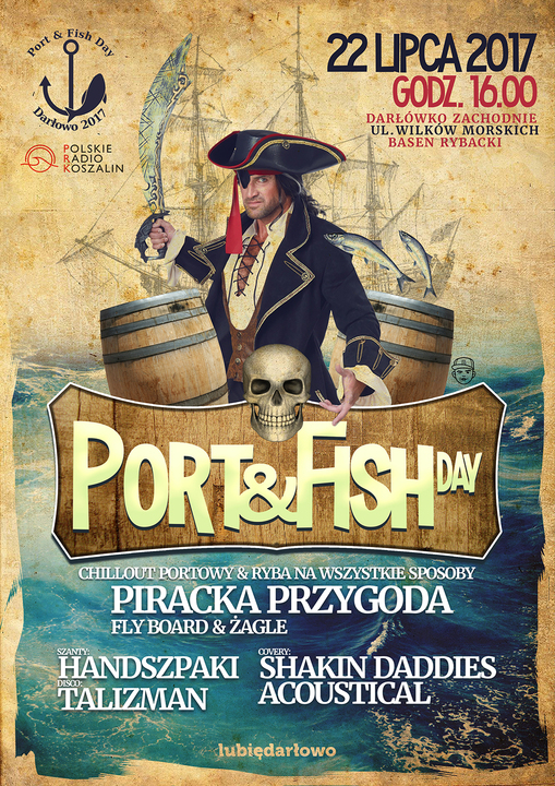 Dziś, 22 lipca od godziny 16:00 zapraszamy na Port &Fish Day - czyli piknik portowy. Odbędzie się on na terenie nowego basenu rybackiego w Darłówku Zachodnim (koniec ul. Wilków Morskich). Będą szanty i covery rockowe, pokazy flyboardu, piracki chrzest morski, żagle na wodzie. Nie zabraknie kulinarnych rarytasów czyli ryb bałtyckich a do tego innych frykasów serwowanych z foodtruck'ów, które w Darłowie pojawią się po raz pierwszy. Na zakończenie dyskoteka portowa. Zapraszamy .