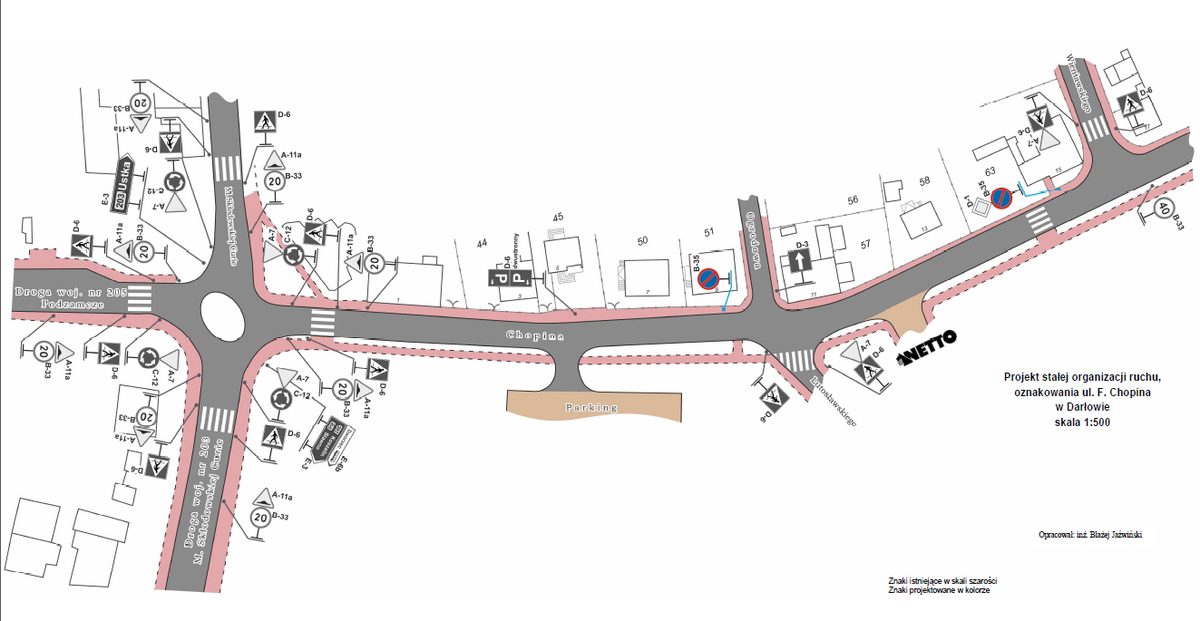 - na ulicy Chopina - od skrzyżowania z ul. H. Wieniawskiego w stronę ul. M. C. Skłodowskiej, po prawej stronie ustawiony zostanie znak B-35 – zakaz postoju.