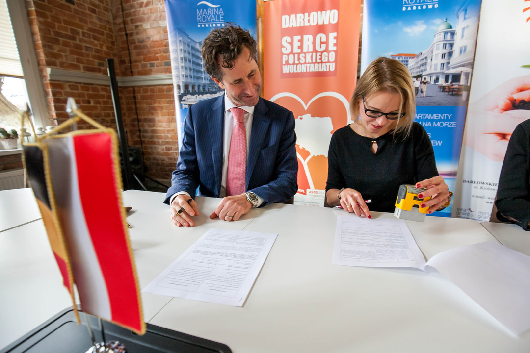 na trzyletnią współpracę w zakresie lokalnych działań społecznych. Umowę tą zawarło darłowskie stowarzyszenie zrzeszające wolontariuszy (DCW) z belgijską firmą inwestującą w Polsce