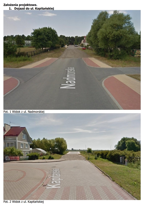Projekt ma być sporządzony w branżach drogowej, sanitarnej i elektrycznej. Obejmie on pierwszy odcinek długości ok. 50 metrów łączący ul. Nadmorską z Kapitańską. Droga łącząca te dwie ulice o szerokości 5,5 metra ma być wykonana z kostki betonowej. Wzdłuż niej będzie przebiegał ciąg pieszo- rowerowy o szerokości 3 metrów, a po drugiej stronie mają być zaprojektowane ogólnodostępne miejsca parkingowe.