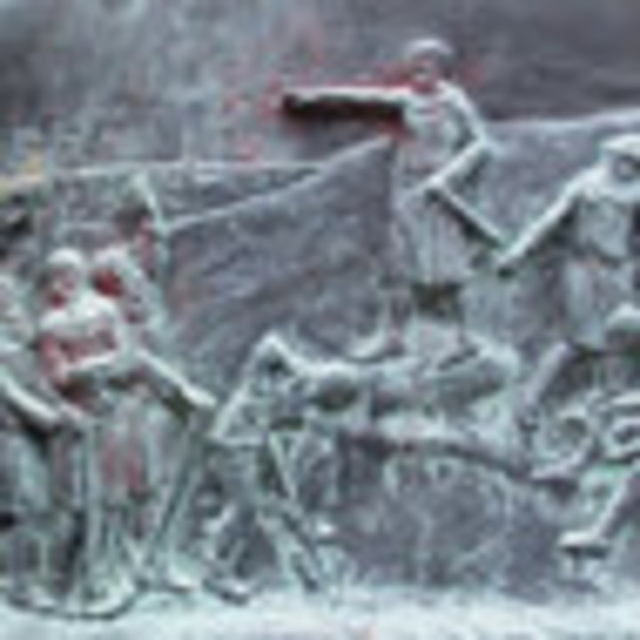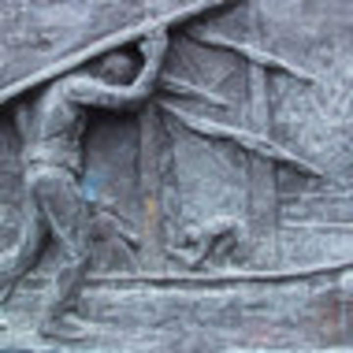 Relief od północy pokazuje robotników portowych zajętych załadunkiem tarcicy na zacumowany do polera dwumasztowy żaglowiec. W dali widać mieszczańskie kamieniczki.