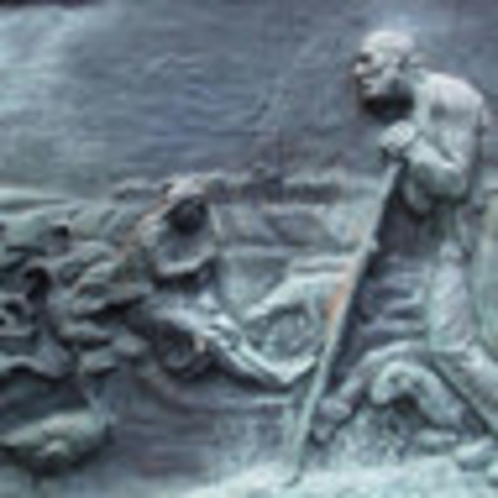Przepiękną fontannę zwieńcza stojąca postać rybaka trzymającego w rękach kadłub łodzi. Na cokole fontanny z trawertynu wmurowano cztery tablice z brązu. Informują one w skrócie o drugiej lokacji miasta i o jego głównych funkcjach handlowych.