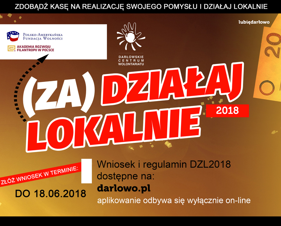 (za)Działaj Lokalnie i złóż wniosek do 18 czerwca br. Zdobądź fundusze na realizację swoich planów, które wniosą dobro w społeczności lokalnej.