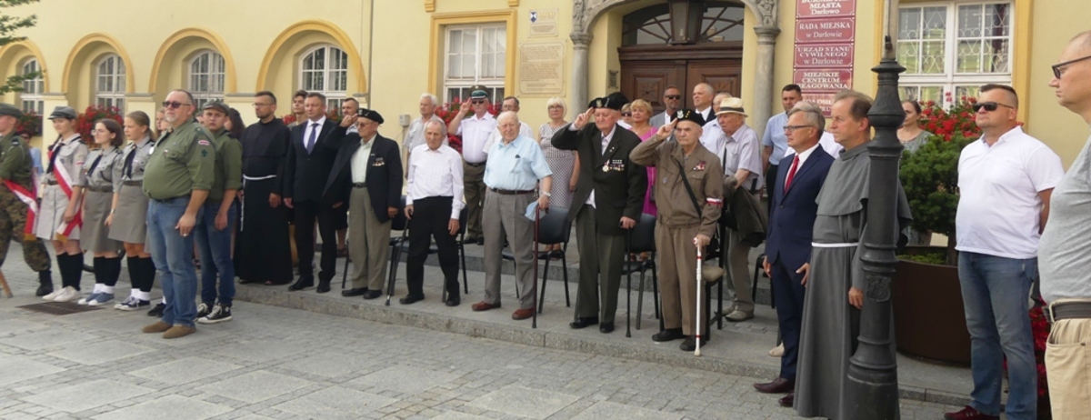 Na rynku przed ratuszem zebrali się kombatanci na czele z Kazimierzem Kuligowskim pseudonim „Wiesiek” walczącym w Powstaniu Warszawskim, władze samorządowe miasta i gminy Darłowo, starosta powiatu sławieńskiego, harcerze oraz mieszkańcy. Po wysłuchaniu Mazurka Dąbrowskiego – Hymnu Narodowego serdecznie powitał zgromadzonych gospodarz miasta Arkadiusz Klimowicz. Szczególnie witał Kazimierza Kuligowskiego prezesa Miejsko- Gminnego Zarządu Związku Kombatantów RP i BWP, ostatniego żyjącego w naszym powiecie powstańca warszawskiego.