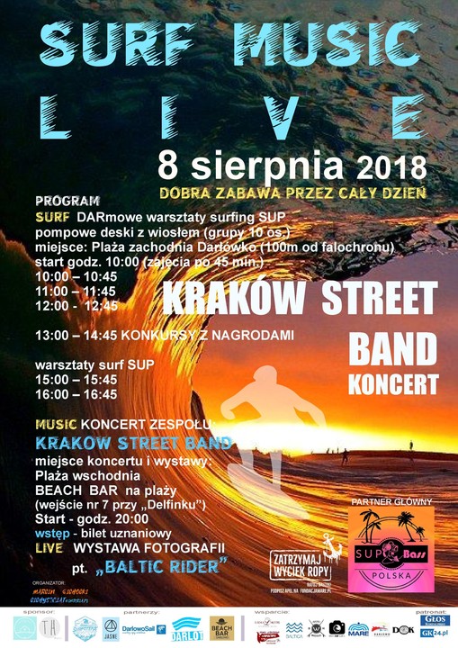 Już jutro na plaży zachodniej w Darłówku, punktualnie o godzinie 10:00 rozpocznie się Surf Music Live. Moc atrakcji i cały dzień dobrej zabawy nad wodą i na wodzie. Tematem przewodnim wydarzenia będą darmowe warsztaty surfing SUP. Ponadto mnóstwo atrakcji dla dzieci w tym warsztaty żeglarstwa, liczne zabawy i konkursy. Widowiskowo zapowiadają się warsztaty z trickboardingu czyli balansowania na desce z walcem.