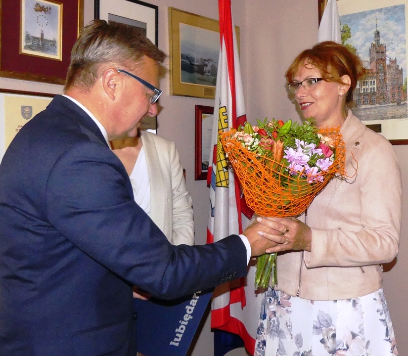 Gospodarz miasta wręczył obu paniom kwiaty i podziękowania za wzorowe pełnienie obowiązków dyrektora Miejskiego Gimnazjum im. Stanisława Dulewicza w okresie w okresie od 1.09.2008 r. do 31.08. 2018 - Małgorzacie Świątkowskiej i dyrektorce Przedszkola Nr 2 im. Janiny Porazińskiej w okresie w okresie od 22.01.2013 do 31.08. 2018 - Grażynie Dulewicz. Do podziękowań Arkadiusz Klimowicz dołączył życzenia zdrowia i szczęścia rodzinnego.