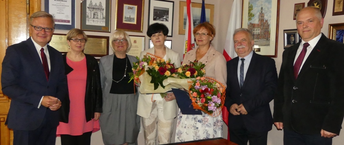 W bardzo serdecznej atmosferze przebiegało 27 sierpnia 2018 dziękczynne spotkanie w gabinecie burmistrza miasta Darłowo z dwoma paniami dyrektorkami dwóch oświatowych placówek samorządowych Małgorzatą Świątkowską dyrektorką Miejskiego Gimnazjum im. Stanisława Dulewicza i Grażyną Dulewicz szefującą Przedszkolu nr 2 im. Janiny Porazińskiej. W spotkaniu uczestniczyli Arkadiusz Klimowicz – burmistrz Darłowa, Czesław Woźniak wiceprzewodniczący Rady Miejskiej, Zbigniew Mielczarski kierownik referatu oświaty i spraw społecznych w UM, Krystyna Różańska - przewodnicząca komisji edukacji, kultury i turystyki RM, Renata Potomska –radna i przedstawicielka Muzeum w Zamku Książąt Pomorskich W Darlowie.