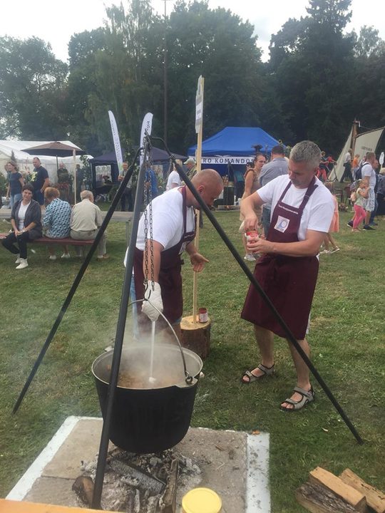 Każdego roku od dziesięciu lat w pierwszy weekend września, w litewskim Silute (Szyłokarczma) odbywa się święto ryby, które już stało się tradycją i rokrocznie przyciąga tysiące widzów. W tym roku do mistrzowskiego konkursu przystąpiło ponad 50 drużyn, wśród których byli zawodowi kucharze, restauratorzy oraz ludowi smakosze z całego świata. Szyłokarczma (Silute) leżąca w pobliżu Zalewu Kurońskiego słynęła z targu rybnego, który odbywał się przez bez mała 500 lat. Dlatego w tym miasteczku w trzecim dniu spotkania roboczego partnerów projektu Fish Markets na zaproszenie gospodarza mera Silute razem z koleżankami z Urzędu Marszałkowskiego - Dominiką i Anią darłowska reprezentacja stanęła przed wyzwaniem ugotowania zupy rybnej wg własnej receptury. Szefem darłowskich kucharzy był Bartłomiej Kruk, na co dzień tworzący zespół referatu integracji europejskiej i inwestycji. Jego prawą ręką był Sławomir Herman - z-ca kierownika ds. inwestycji. Nasze koleżanki odpowiedzialne były za stałą kontrolę procesu gotowania i weryfikowania smaku.
