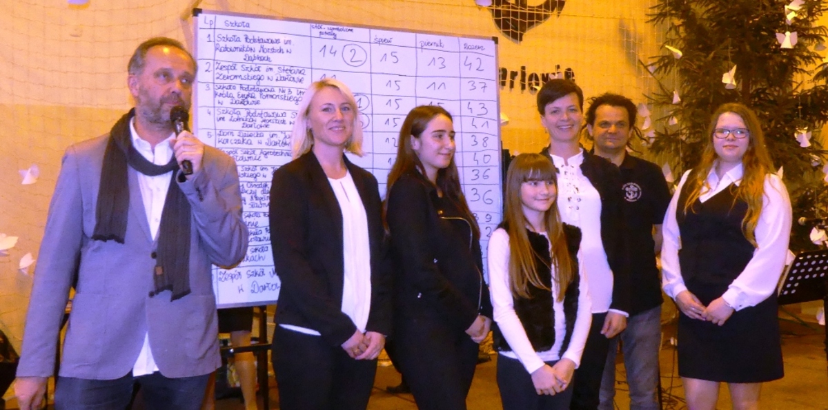 Społeczność Zespołu Szkół Morskich w Darłowie na tę wspaniałą imprezę przygotowała parę tysięcy kartonowych białych Aniołków, którymi udekorowano salę gimnastyczną stwarzając niebiański nastrój. Tegoroczne jury w składzie Arkadiusz Sip dyrektor DOK-u, Robert Gorgol nauczyciel żywienia w ZSM i najlepsza uczennica w tej specjalności oceniali startujące zespoły w trzech konkurencjach: wygląd świątecznego stołu i smak wigilijnych potraw, śpiewanie kolęd i pastorałek oraz smak perników i ciast. W tym roku pierwsze miejsce w łącznej punktacji zajęła Szkoła Podstawowa Nr 3 im. Króla Eryka Pomorskiego w Darłowie zdobywając 43 punkty. Drugie miejsce wywalczyła Szkoła Podstawowa im. Ratowników Morskich w Dąbkach-42 p. Na trzeciej pozycji uplasowała się Szkoła Podstawowa STO im. Lotników Morskich w Darłówku zdobywając 41 p. Zaledwie jednego punktu zabrakło Zespołowi Szkół Agrotechnicznych w Sławnie do zdobycia medalowej pozycji Zwycięska szkoła otrzyma 20 biletów do darłowskiego kina Bajka w Darłowie na dowolny film. Wszędzie królowały tradycyjne pyszne potrawy wigilijne jak uszka, pierogi, sałatki ryby pod wieloma postaciami, czerwony barszczyk i pyszne ciasta. Wszystkim placówkom oświatowym biorącym udział pokazie należą się wyrazy uznania i gratulacje. Degustacjom potraw towarzyszyły występy solistów i zespołów śpiewaczych z poszczególnych szkół występów. Organizatorzy konkursu spisali się na szóstkę z plusem.