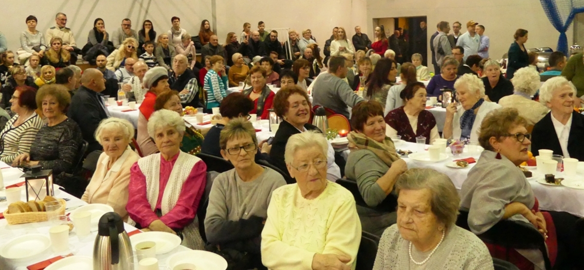 Ojciec Wiesław Przybysz razem uczestnikami wieczoru przed wigilijnego odmówił modlitwę i poświęcił opłatek, którym wszyscy się łamali i składali życzenia.