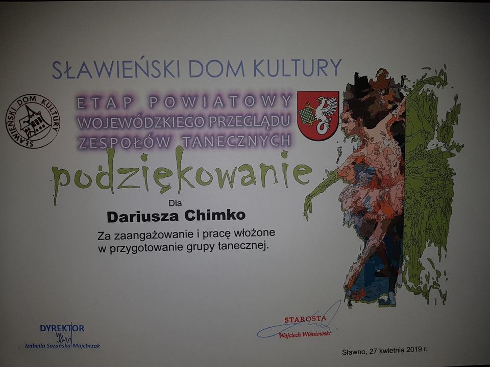 Jak nas informuje Moniika Bobrowska kolejny sukces odniosło Darłowskie Studio Taneczno- Wokalne „Revoltade” w Powiatowym Przeglądzie Amatorskiego Ruchu Artystycznego, który miał miejsce 27 kwietnia br. w Domu Kultury w Sławnie. W przeglądzie ARA-2019 w kategorii zespoły taneczne wyłoniono trzech laureatów do etapu wojewódzkiego. Etap ten odbędzie się kolejny raz w Szczecinie dnia 1czerwca 2019. Darłowskie Studio Taneczno- Wokalne "Revoltade" pod kierunkiem Dariusza Chimko z Darłowskiego Ośrodka Kultury im. Leopolda Tyrmanda dostąpiło zaszczytu otrzymania tytułu laureata i w ten sposób zostało nominowane do przeglądu wojewódzkiego. Naszym laureatom gratulujemy i życzymy dalszych sukcesów.
