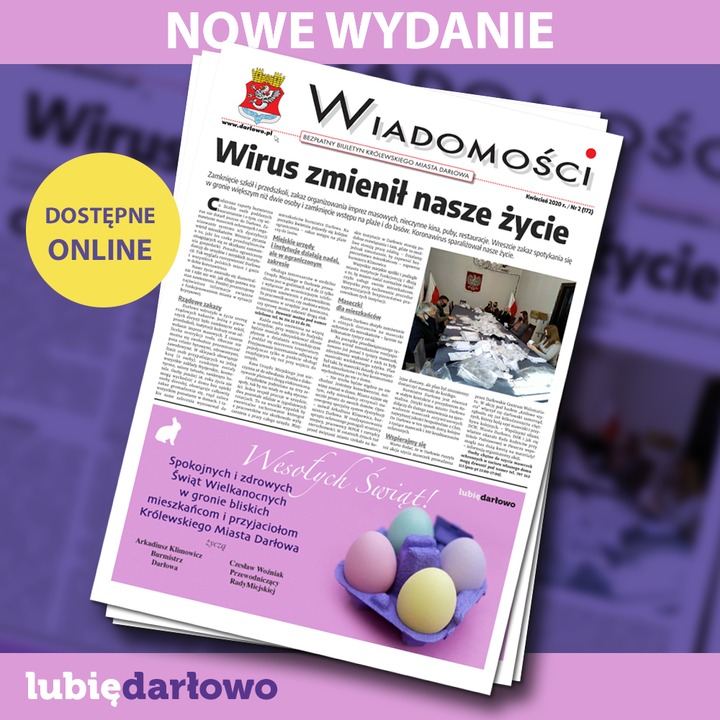 Pierwszy raz, bo nietypowo - oddajemy w Państwa ręce świąteczne wydanie Wiadomości Darłowskich tylko w wersji elektronicznej. Kwietniowy numer dostępny jest pod adresem: https://tinyurl.com/tzmbrqp