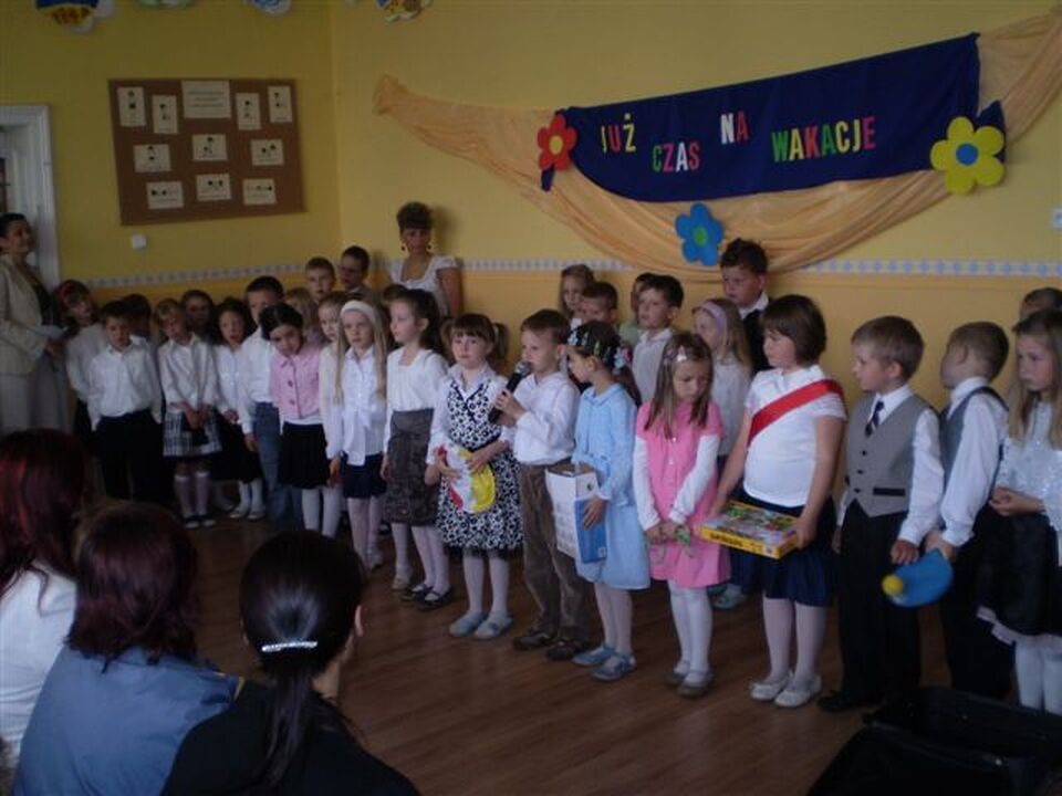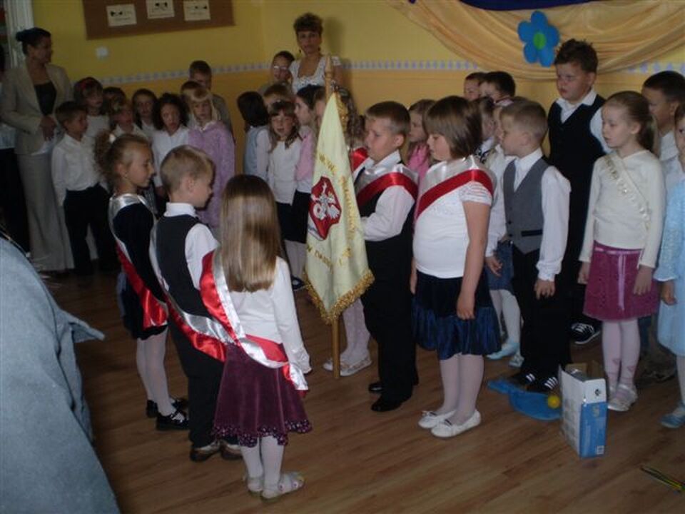W piątek 19 czerwca 2009r odbyło się uroczyste pożegnanie w grupach przedszkolnych o jednorocznym oddziaływaniu wychowawczo - dydaktycznym. Zarówno przedszkolaki z pierwszej jak i z drugiej zmiany rozpoczęły uroczystość od wprowadzenia sztandaru przedszkola, zaśpiewania hymnu państwowego, złożenia ślubowania i przekazania sztandaru swoim następcom. Hymn przedszkola poprzedził część artystyczną, w której motywem przewodnim były wakacje oraz radość z faktu stania się uczniami.