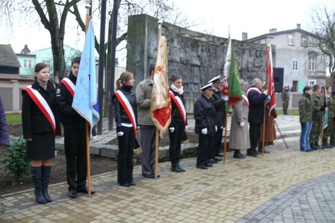 Po mszy poczty sztandarowe, kompania honorowa Marynarki Wojennej oraz po raz pierwszy kompania honorowa Zespołu Szkół Morskich, Straż Graniczna, władze samorządowe miasta i powiatu, kombatanci, delegacje, harcerze i mieszkańcy przy dźwiękach orkiestry dętej przemaszerowali z kościoła na plac Marszałka Józefa Piłsudskiego gdzie odbyła się patriotyczna uroczystość. Uświetnili ją m.in. starosta powiatu sławieńskiego -Andrzej Lewandowski, burmistrz miasta Darłowo Arkadiusz Klimowicz, dowódcy jednostek wojskowych i służb mundurowych oraz radni. Mieszkańcy i młodzież wysłuchali wystąpienia starosty sławieńskiego Andrzeja Lewandowskiego, który przypomniał trudną drogę do odzyskania niepodległości.