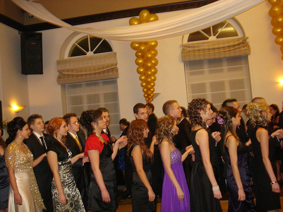 Zabawę rozpoczął tradycyjny polonez i słowa dyrektora mgr Bogdana Herbecia „Studniówkę 2010 uważam za rozpoczętą ". We wspaniale przygotowanej sali wszyscy bawili się wyśmienicie. Zespół muzyczny podgrzewał taneczną atmosferę znanymi standardami a na parkiecie brakowało wolnego miejsca. Nie obyło się też bez pamiątkowych zdjęć klas z wychowawcami i gronem pedagogicznym oraz.....fotek, na których widać tradycyjne czerwone podwiązki mające przynieść szczęście na majowym egzaminie maturalnym.