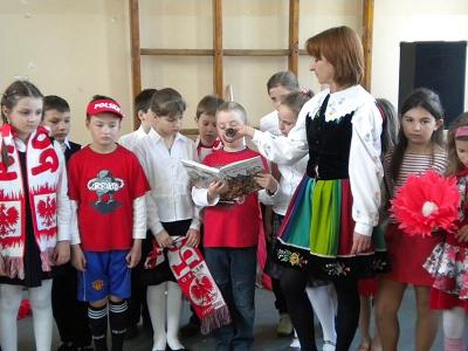 Pani Aldona Śmigielska i Bogusława Skoneczna wraz ze swoimi uczniami - klasą IId i IIe, zaproponowały lekcję patriotyzmu w formie radosnej zabawy i podróży po Polsce. Wędrówka po kraju śladami naszej historii i symboli narodowych przybliżyła dzieciom święte dla każdego Polaka symbole: godło, flagę i hymn państwowy. W konkursie udział wzięła drużyna „Dzieciaków" pod przywództwem pani wicedyrektor Małgorzaty Wawulskiej, oraz drużyna „Dorosłych" uzbrojona w fachową wiedzę historyczną dyrektora szkoły - pana Andrzeja Protasewicza.