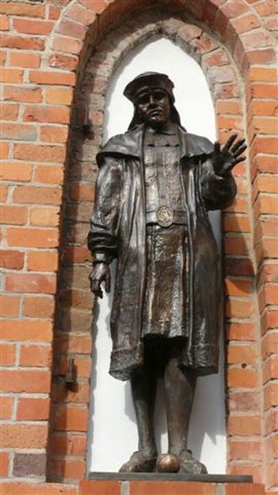 Rzeźba króla stanęła na dziedzińcu w gotyckiej wnęce bramy darłowskiego zamku, w którym urodził się w 1382 i zmarł w 1459 książę pomorski i władca trzech królestw Danii, Szwecji i Norwegii połączonych unią kalmarską.