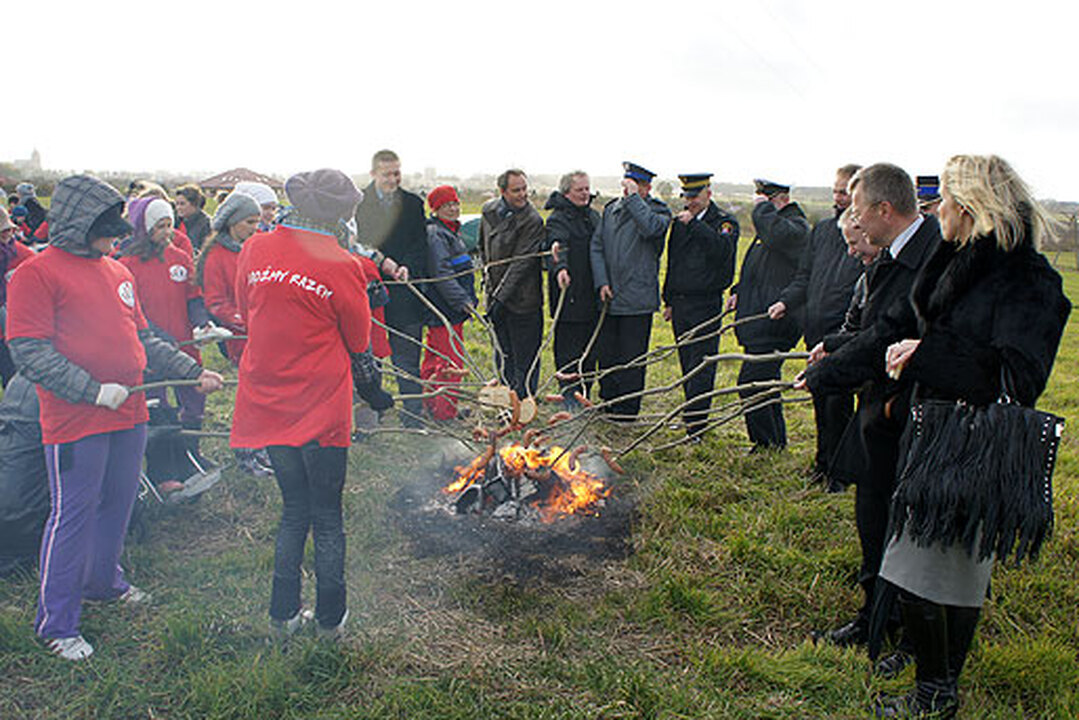 Po posadzeniu cebulek żonkili odbyło się wspólne pieczenie kiełbasek przy ognisku.