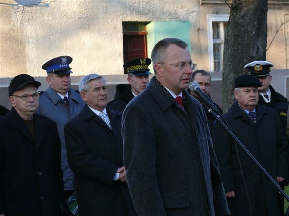 Po odegraniu Hymnu Państwowego do zgromadzonych przemówił Arkadiusz Klimowicz – burmistrz miasta Darłowo. Przypomniał on nie tylko trudną drogę rodaków do odzyskania niepodległości po 123 latach zaborów, ale również okres powstania „Solidarności” i zmiany ustroju państwa, jakie przeprowadzono po roku 1989. Mówca podkreślił, że dzięki temu zwrotowi i patriotyzmowi jesteśmy wolnym krajem w rodzinie państw unijnych. Głos zabrał również Kazimierz Kuligowski - prezes Związku Kombatantów RP i Byłych Więźniów Politycznych, który podziękował władzom miasta i gminy Darłowo za wmurowanie granitowych tablic z nazwiskami nieżyjących kombatantów RP. Salwą Kompanii Honorowej MW uczczono pamięć wszystkich walczących o wolną Ojczyznę.