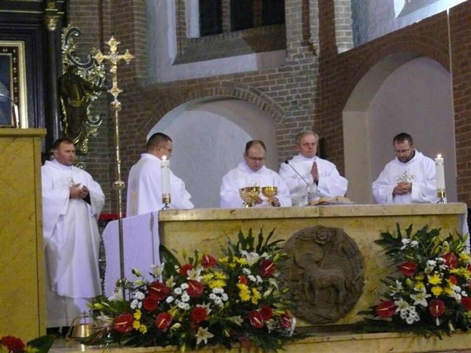 Dalszy ciąg uroczystości odbywał się w Kościele Mariackim. Uroczystą Mszę Świętą w intencji Ojczyzny odprawił o. Stanisław Piankowski - proboszcz parafii MB Częstochowskiej w asyście czterech duchownych - zwierzchników darłowskich parafii.