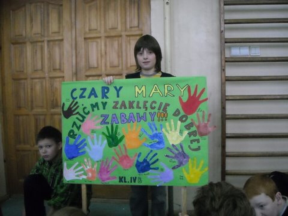 W czasie trwania imprezy uczniowie mogli zaprezentować swoje plakaty i hasła reklamowe, rozwiązywali krzyżówkę o szkole, zamkniętymi oczami rysowali portret wychowawcy. Jako sprawni obserwatorzy wskazywali różnice między dwoma obrazkami, brali udział w torze przeszkód oraz rozwiązywali łamigłówkę matematyczną.