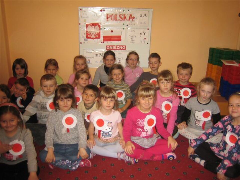 W atmosferze nawiązującej do święta narodowego „Święta Niepodległości" wolontariusze: Patryk Kumoch, Weronika Drzewucka i Nikola Jacyszyn czytali dzieciom legendę „O Lechu, Czechu i Rusie". Po wysłuchaniu legendy, przedszkolacy opowiadali jej treść z użyciem barwnych ilustracji. Mali obywatele Darłowa doskonale znają nazwę naszego państwa, potrafią także wytłumaczyć jej pochodzenie. Wiedzą, że Gniezno było pierwszą stolicą Polski, oraz jaki znak zatrzymał Lecha pod wielkim dębem. Dzieci, z dużym zaangażowaniem, przygotowywały kotyliony w barwach narodowych, które z radością i dumą nosiły przypięte na piersiach. Nasi przedszkolacy to prawdziwi patrioci.