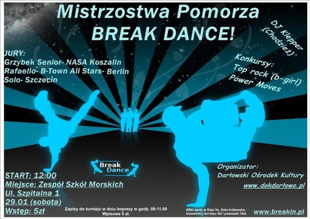 Już w sobotę 29 stycznia o godz. 12 w sali gimnastycznej Zespołu Szkół Morskich w Darłowie przy ul. Szpitalnej 1 w pięciu kategoriach odbędą się Mistrzostwa Pomorza w break dance.