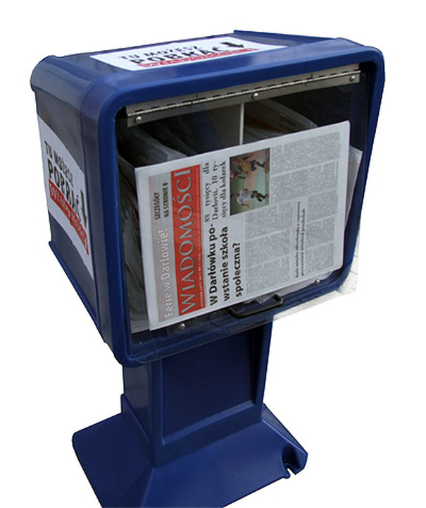 Próbny stojak na „Wiadomości Darłowskie" jest obecnie testowany po to, aby w najbliższej przyszłości umieszczać w nim i w kilku innych rozmieszczonych w różnych częściach miasta materiały o tematyce informacyjnej dla mieszkańców i turystów.