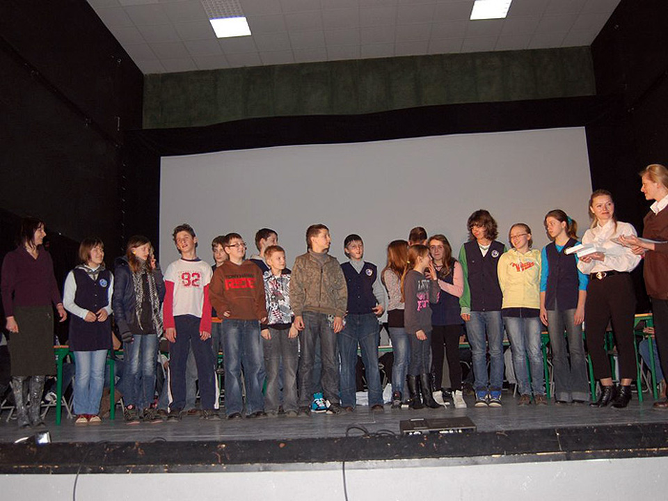 Pomiędzy poszczególnymi częściami turnieju uczniów SP 3 w Darłowie zgromadzonych na widowni zabawiały humorystyczne występy przygotowane przez ich starszych kolegów z Miejskiego Gimnazjum im. Stanisława Dulewicza w Darłowie.